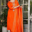 The ensemble is completed with a stunning jacquard orange dupatta featuring detailed zari embroidery. This dupatta enhances the overall elegance of the outfit, making it perfect for festive and formal gatherings.