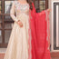 Paired with a striking red georgette dupatta featuring traditional bandhani print and exquisite embroidered cut-work detailing, this ensemble balances classic craftsmanship with modern sophistication. Whether you're attending a wedding or a cultural celebration, this outfit promises to leave a lasting impression.