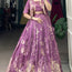 Step into elegance with this purple tussar silk lehenga, featuring a vibrant floral print and stitched with canvas and cancan for enhanced flair. With a 3.5-meter flair, micro cotton lining, and a stylish drawstring closure with heavy tassels, it delivers both comfort and a regal look ideal for traditional celebrations.