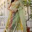 Completing the ensemble is a graceful light green net dupatta, embellished with sequin embroidery and finished with a delicate lace border. This lively and elegant set beautifully blends grandeur and tradition, making it an ideal choice for bridal events and cultural celebrations.