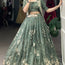 Elevate your festive wardrobe with this bottle green tussar silk lehenga, beautifully adorned with a vibrant floral print. Featuring a 3.5-meter flair, canvas and cancan stitching, micro cotton lining, and a drawstring closure with heavy tassels, it offers both comfort and a regal look perfect for traditional celebrations.