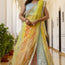 The ensemble is paired with a sky-blue unstitched georgette blouse featuring intricate sequins and thread embroidery. Its micro cotton lining and customizable fit allow for a tailored look that blends traditional charm with modern elegance.