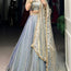 Step into a world of soft elegance with this enchanting sky-blue color chinon lehenga, exquisitely adorned with sequin and thread embroidery work. The lehenga features a finely crafted embroidered belt that adds a flattering structure while enhancing its graceful flow, making it perfect for festive and wedding occasions.