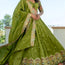 Spectacular Green Thread Embroidered Silk Mehendi Wear Lehenga Choli