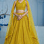Brighten your special moments with this haldi wear yellow georgette lehenga, exquisitely adorned with sequins and thread embroidery. Designed with a 43-inch length and stitchable up to 42 inches, it ensures a flattering fit. The vibrant color and intricate detailing make it a perfect choice for haldi ceremonies and wedding festivities.
