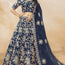 Step into elegance with this stunning navy-blue silk lehenga, exquisitely crafted with shimmering sequin and intricate dori embroidery work. The richness of the silk fabric enhances the grandeur of the lehenga, while the detailed embellishments add a festive sparkle that makes it a perfect choice for weddings, receptions, and special occasions.
