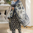 The contrasting dupatta enhances the outfit with its cream shade and navy motifs, including ethnic patterns and nature-inspired prints. Finished with a bold printed border, it adds a graceful flair whether draped traditionally or styled casually.