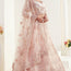 This peach net lehenga choli radiates elegance and finesse through its delicately embroidered surface. The lehenga features a luxurious spread of sequins, zari, and thread work in floral and chevron patterns that flow gracefully across its expanse.
