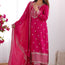 Unique Pink Embroidery Work Chinon Wedding Wear Pant Suit With Dupatta