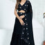 Step into the spotlight with this glamorous black faux georgette lehenga, boasting a crease zigzag pattern and intricate embroidery sequence thread work. Fully stitched up to 42 inches with a 3.50-meter flair, it offers a graceful silhouette perfect for cocktail parties and Bollywood nights.