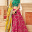 Complementing the lehenga is a beautifully designed green choli, also made from art silk, showcasing intricate dori and sequins work. The fully unstitched choli material allows for a personalized fit, ensuring you feel comfortable and stylish.