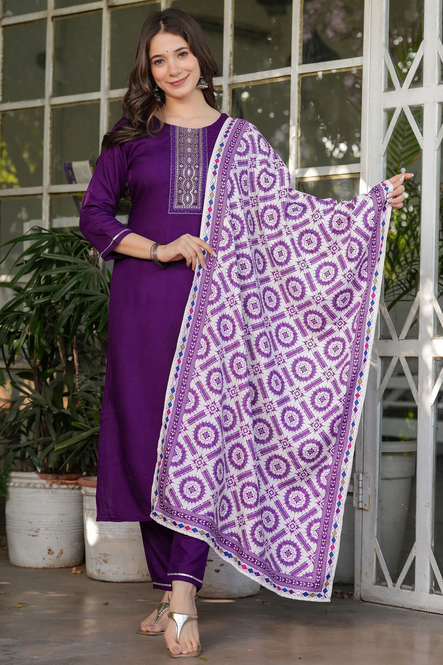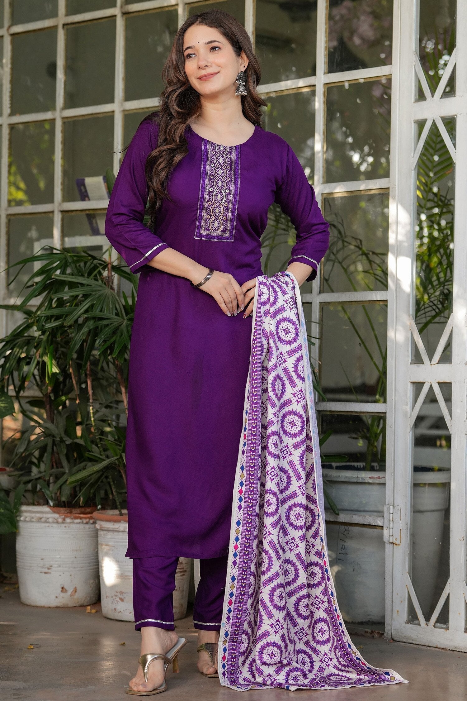 Make a statement with this elegant wine sequin rayon suit featuring intricate thread embroidery that blends traditional charm with modern sophistication. Available in sizes S to XXL, this suit offers a flattering fit and ensures you look radiant at any festive occasion.