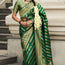 To complete this timeless ensemble, the saree comes with a matching unstitched green blouse crafted from fancy fabric, incorporating beautiful zari weaving details that enhance its allure. This exquisite combination not only embodies refined traditional aesthetics but also ensures graceful draping, allowing you to radiate elegance and charm at any occasion.