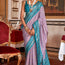 Paired with a sky-blue silk blouse that complements the lavender hue perfectly, this ensemble radiates vibrant charm. The unstitched blouse material allows for customization, enabling you to tailor it to your desired fit, ensuring you create unforgettable memories while showcasing your unique fashion sense.