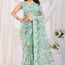 Alluring Sea Green Thread Embroidered Net Saree With Blouse