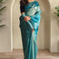 Pair this elegant sky-blue silk saree with a contrasting blouse in shades like navy blue, deep pink, or rich maroon to add a bold and striking accent.