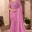 Charming Pink Border Work Chiffon Engagement Wear Saree