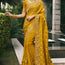 Enhance your ethnic collection with this exquisite Mustard saree crafted from luxurious tissue silk. Enhanced by intricate embroidery and adorned with stones, pearls, and real mirror work along the border, it offers a stunning look ideal for functions and weddings. The zari weaving elegantly spans across the saree, creating a masterpiece that is sure to turn heads at any event.