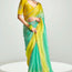Paired with a contrasting yellow silk blouse adorned with intricate thread embroidery and sparkling sequin work, this ensemble captures the perfect blend of vibrance and sophistication. The bold color contrast and detailed craftsmanship make it a standout choice for those who love traditional elegance with a modern twist.