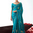 The silk blouse is equally elegant in the same teal tone, with complementary embroidery on the sleeves and neckline, enhancing the overall aesthetic. Paired with statement jewelry and styled with sophistication, this outfit is ideal for weddings, receptions, or grand celebrations.