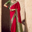 This vibrant red saree showcases a rich and regal look with its beautifully woven golden-green zari border. The fabric drapes gracefully, highlighting traditional craftsmanship with intricate paisley and floral motifs along the pallu. The striking color combination enhances its festive charm, making it perfect for weddings, cultural celebrations, and grand occasions.
