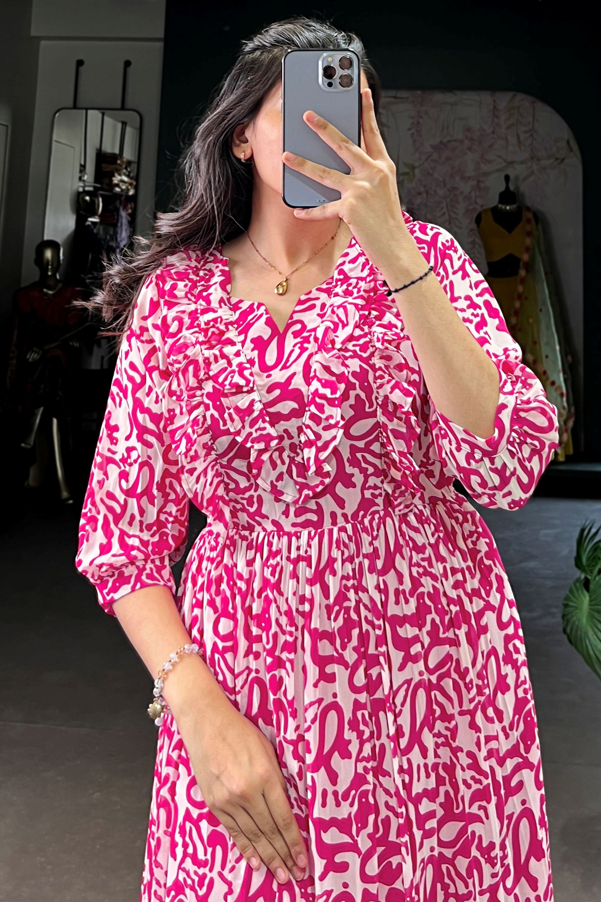 Wonderful Pink Digital Printed Georgette Casual Wear Dress
