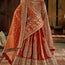 This exquisite bridal lehenga set is a masterpiece of Indian craftsmanship, featuring a rich orange hue that radiates royal elegance. The lehenga is made from luxurious silk, adorned with heavy embroidery, sequins, pearl, thread, and zari weaving work, creating a magnificent pattern of traditional motifs and intricate detailing throughout the flared base.