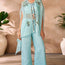 Paired with matching aqua blue pants, this ensemble ensures both comfort and sophistication. The rich color and detailed craftsmanship make it a standout choice for fashion-forward individuals who love to make a statement.