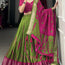 Step into tradition with elegance in this green stitched lehenga, made from rich dola silk and adorned with vibrant shibori print and a detailed zari weaving border. The 3.80-meter flair, canvas stitching, and soft micro cotton lining ensure a regal and comfortable fit perfect for weddings and grand festivities.