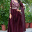 Astonishing Wine Sequins Silk Wedding Wear Gown With Dupatta