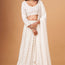 Lighten up your special day with this gorgeous off-white georgette lehenga, meticulously adorned with four types of sequin embroidery. Featuring fancy threadwork and intricate detailing, it’s a dreamy choice for bridesmaids and grand celebrations.