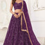 Make a statement at your next special occasion wedding or engagement function with our stunning purple lehenga, which beautifully fuses traditional craftsmanship with modern elegance. Adorned with intricate butterfly net thread work, this exquisite attire features mesmerizing sequins and original mirror handwork, ensuring you stand out in a crowd.