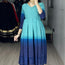 Shine effortlessly in this sky-blue cotton gown, intricately designed with all-over chikankari work, elegant cut patterns, and a subtle faded print. The breathable chikankari cotton ensures comfort, while the flattering stitched fit (M size with margin up to 44) offers versatility for various occasions. With a 52-inch length, 17-inch 3/4 sleeves, and full micro cotton lining, this gown brings together grace and ease in one ensemble. Ideal for casual outings or daytime gatherings, its soothing color and detailed craftsmanship make it a wardrobe essential.