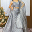 Make a statement with this stunning grey lehenga, crafted from luxurious kasturi crepe silk and adorned with exquisite sequins embroidery. Featuring a semi-stitched design with a grand 4.25-meter flair and can-can, it creates a radiant silhouette perfect for weddings and festive occasions.