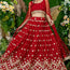 The red-color choli comes with an attached net dupatta on both sides, beautifully crafted with embroidery and lace work.