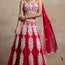 Embrace the allure of tradition with this exquisite red georgette lehenga, a masterpiece of sequin work, delicate thread detailing, and intricate embroidery. The semi-stitched design ensures a customizable fit, promising both comfort and a flattering silhouette for any special occasion.