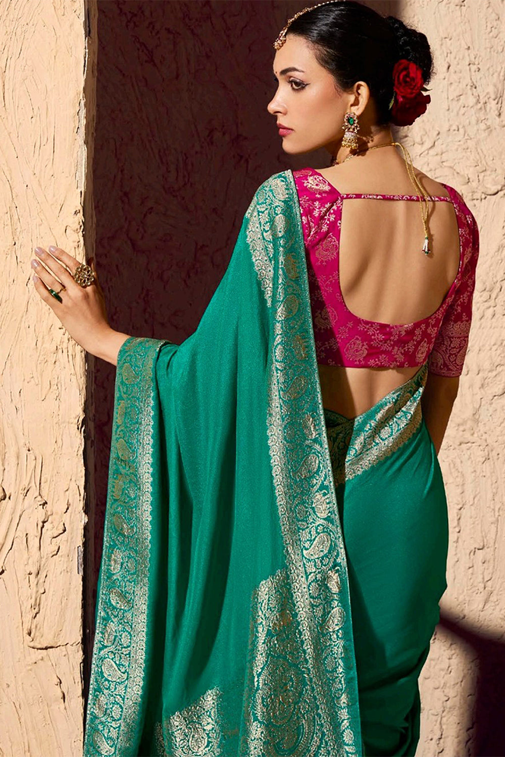 Amazing Green Zari Weaving Georgette Traditional Saree With Blouse