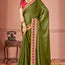 Drape yourself in the captivating beauty of this green silk saree, a true masterpiece crafted for unforgettable moments. Its rich fabric is adorned with dazzling swarovski crystals and a delicate lace border, promising an aura of sheer elegance.