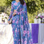 Incredible Blue Floral Printed Chiffon Casual Wear Saree With Blouse