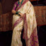 Capture the spirit of upcoming festivities with this exquisite cream-colored dola silk saree. Adorned with intricate zari weaving, delicate thread embroidery, shimmering sequins, and subtle mirror work, it exudes an air of timeless elegance and ethnic charm.