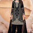 Make a striking statement this eid with a luxurious black georgette suit, meticulously adorned with intricate zari embroidery and sparkling swarovski crystals. This standout ensemble is perfect for festive occasions.