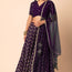 Make a captivating entrance with this stunning purple georgette lehenga. Designed with a rich sense of style and exquisite zari embroidery and shimmering sequin work, this semi-stitched garment promises a glamorous look for any special event, fitting up to 42 inches.