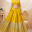 Everyone will admire you when you wear this charming yellow color lehenga framed with georgette material embellished with zari embroidered work, threadwork, and a paper mirror. This yellow lehenga choli at your wedding functions like haldi, and on occasions where you want to be the focus point.