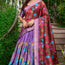 The accompanying unstitched choli, also made from dola silk, features a matching printed design with a zari border, offering versatility for your personal touch. Measuring 0.90 meters in length, the blouse can be tailored to fit your style perfectly, whether you prefer a more fitted look or a relaxed silhouette.