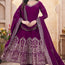 This stunning purple roman silk anarkali suit is a true work of art. Adorned with intricate foil print and delicate mirror work, it's available in sizes M and XL for a flattering fit. Prepare to captivate and receive compliments on your impeccable style.
