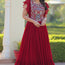 Make a striking impression with this maroon color georgette stitched gown, adorned with exquisite beads, sequins, and intricate multi-threaded embroidered work. The rich maroon hue paired with detailed embellishments adds a regal charm, making it a perfect choice for festive celebrations, receptions, or evening functions. Crafted from lightweight georgette, the gown offers graceful flow and effortless elegance with every step.