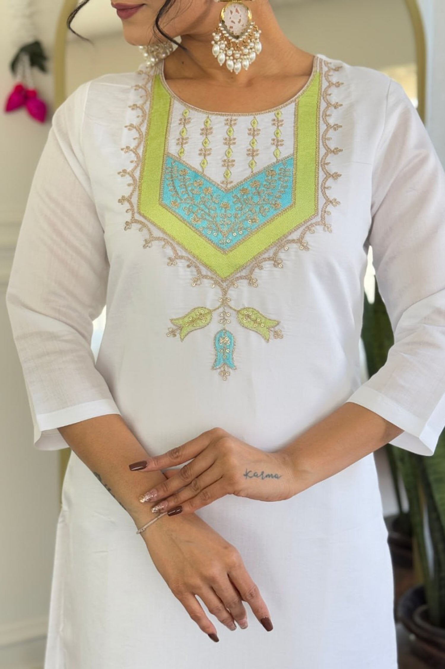 Step into effortless elegance with this off-white viscose blend suit, detailed with intricate thread embroidery and shimmering sequin work. Designed in sizes S to XXL, it’s perfect for festive gatherings, weddings, or special events.