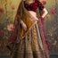 Prepare to be captivated by a bride's unforgettable entrance in this stunning red velvet and yellow lehenga. This ensemble is the perfect blend of tradition and modern elegance, meticulously embroidered with jarkan, sequins, diamonds, thread, and zari.