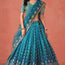 The lehenga is perfectly complemented by a similar teal blue color georgette choli, beautifully embellished with intricate zari embroidery and sparkling sequin work.
