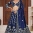This royal blue lehenga is a masterpiece of elegance, featuring exquisite craftsmanship on rich net fabric. The lehenga is adorned with intricate floral embroidery in silver threads, enhanced with mirror work that reflects light beautifully, adding sparkle and grandeur to the attire.
